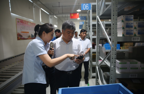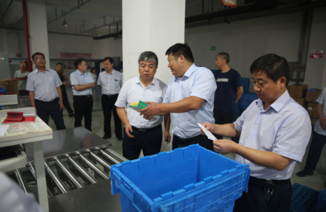 陳書(shū)記一行首先參觀了我公司現(xiàn)代化物流倉(cāng)儲(chǔ)中心,對(duì)我公司的現(xiàn)代化倉(cāng)儲(chǔ)物流系統(tǒng)、現(xiàn)代化庫(kù)房、自動(dòng)化分揀線(xiàn)的建設(shè)情況進(jìn)行了詳細(xì)的考察。